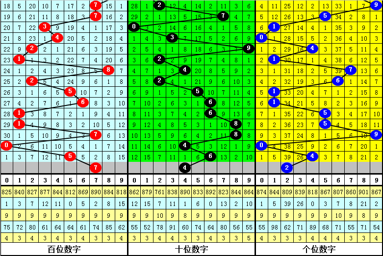 百位分析:百位上期开出号码5,历史上该位号码5出现了812次,最近100期号码5出现次,上期间隔5期再次出现。