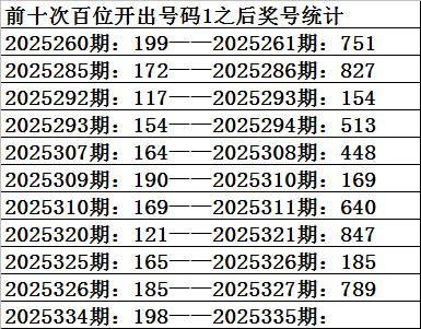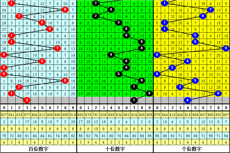二、百位分析:上期开出号码1,前10次号码1出现之后下期分别开出号码:7815416817,其中号码大小比为6:4,基本相当;奇偶比为6:4,基本相等;012路比为1:6:3,0路号码表现较冷。本期参考号码:3。