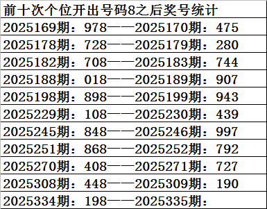 四、个位分析:上期开出号码8,前10次号码8出现之后下期同位号码为:5047397270,其中号码大小比为5:5,相等;奇偶比为6:4,基本持平;012路比为4:4:2,1路号码走温。本期参考号码:4。