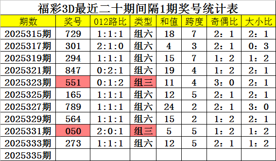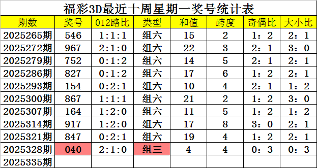 奖号类型分析:从近期周一开奖数据分析,组六近期热出,十周内出现9次,当前遗漏1周,组三出现1次,表现相对较冷,本周一预计继续开出组六号码。
