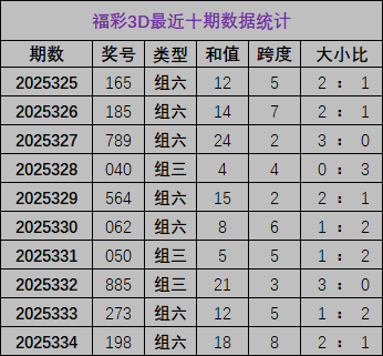 开奖回顾:福彩3D上期开奖号为198,和值为18,跨度8,其中奖号大小比为2:1
