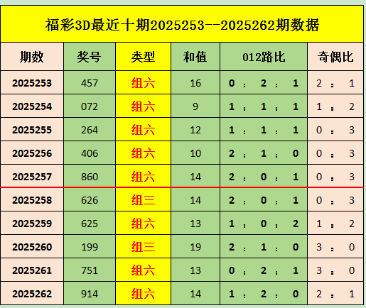 福彩3D上期开出奖号为914,奖号为组六形态,和值为14,012路比为1 : 2 : 0,奇偶比为2 : 1。