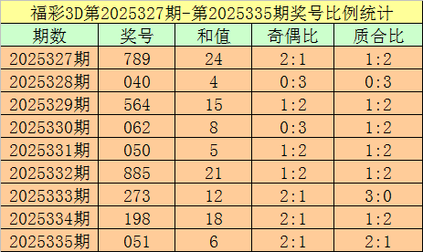 开奖回顾:福彩3D第2025335期:奖号为051,奖号质合比为2:1,大小比为1:2,跨度为5,类型为组六。