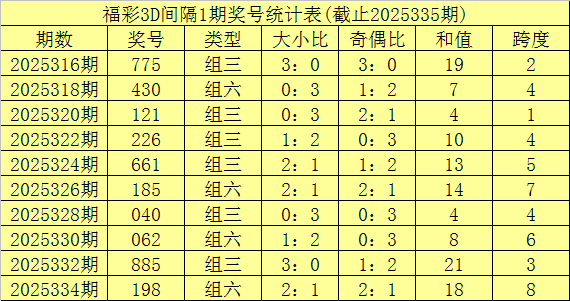 开奖回顾:福利彩票3D第25335期奖号开出051。奖号类型为组六,奇偶形态为偶奇奇,大小形态为小大小。