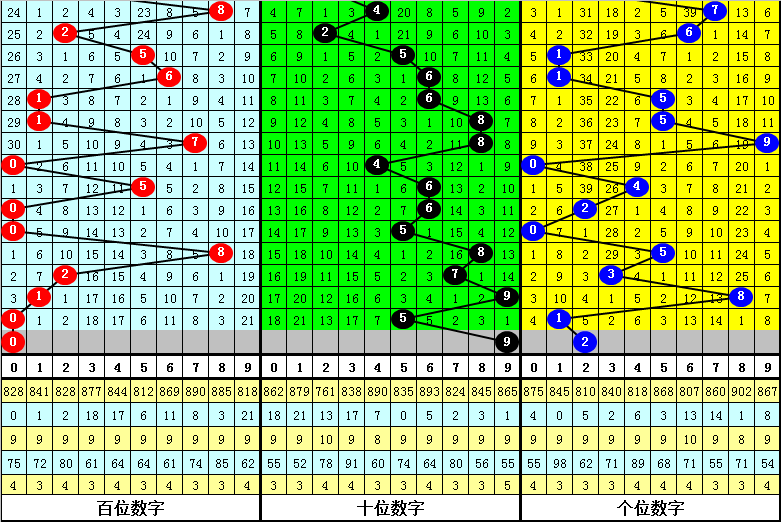 百位号码:第25331期-25335期奖号为:0-8-2-1-0,振幅为8点,分布较分散,本期注意百位开出重复号码。
