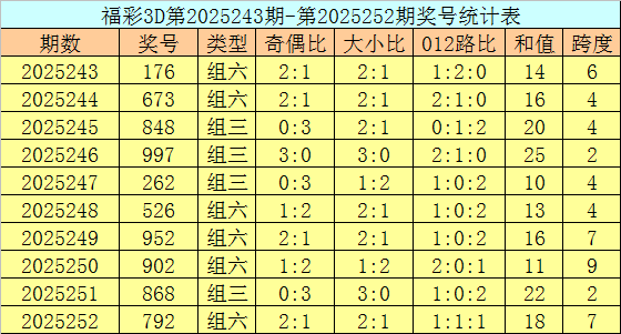 郑飞福彩3D第2025263期推荐:
