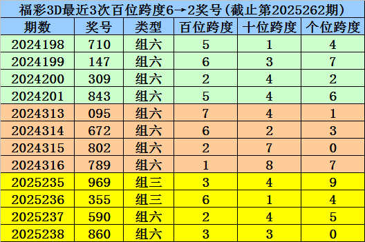 第2025235-第2025237期奖号:969、355、590,其下期奖号为:860,首位号码跨度为3;