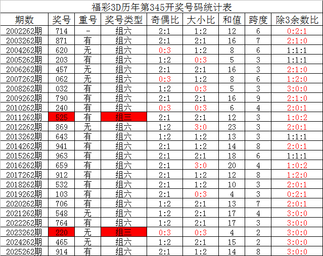其中,组三号码开出7次,组六号码出现16次,组六号码目前连续2年没有出现,本期今年同期看好开出组六号码。