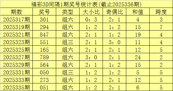开奖回顾:福利彩票3D第25336期奖号开出641。奖号类型为组六,奇偶形态为偶偶奇,大小形态为大小小。