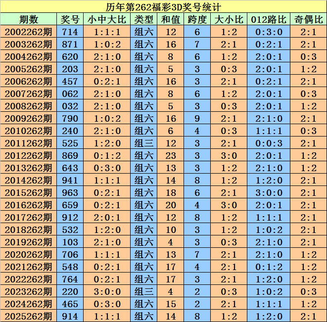 开奖回顾:福彩3D第2025262期奖号为:914。