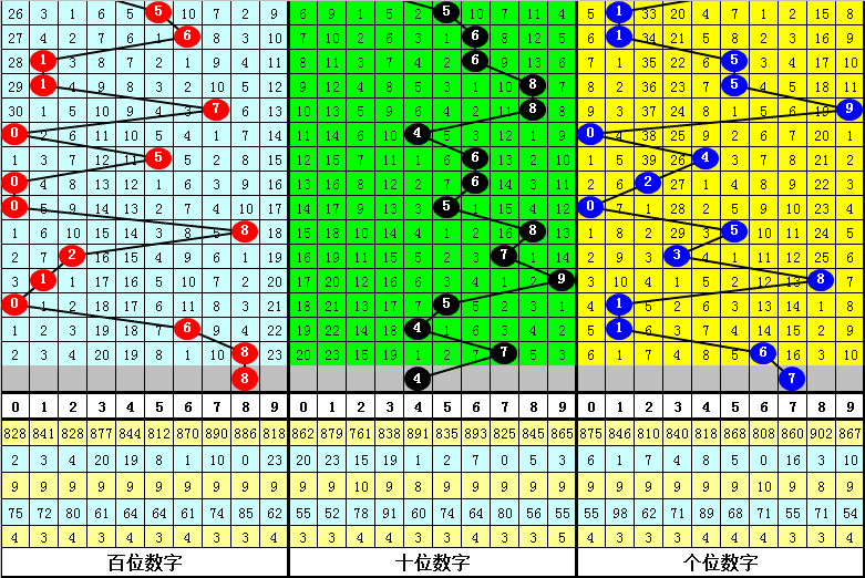 从以上统计可以看出,百十位两码合差5与1同时出现之后其下期两码合差表现最热的4个分别为:1457,本期百十位两码合差可以参考这四码中的数据。