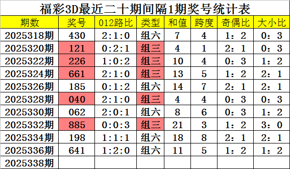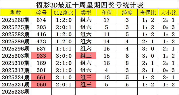 奖号类型分析:从近期周四开奖数据分析,组六近期热出,十周内出现7次,当前遗漏2周,组三出现3次,表现相对较冷,本周四预计继续开出组六号码。