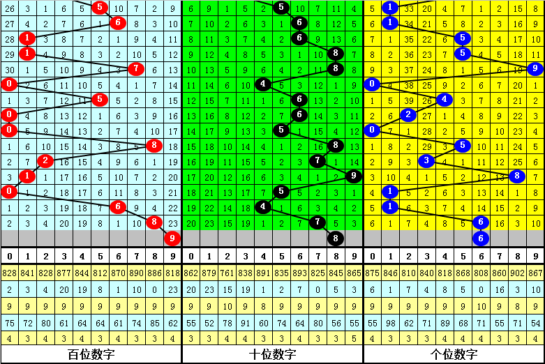 十位:上期奖号开出奇数大号:7,统计连续7期奖号,该位分别出现:奇数大号:5、偶数大号:8、奇数大号:7、奇数大号:9、奇数大号:5、偶数小 号:4、奇数大号:7,其中偶数走势较冷,大号相对较热,本期十位预计出现偶数大号。