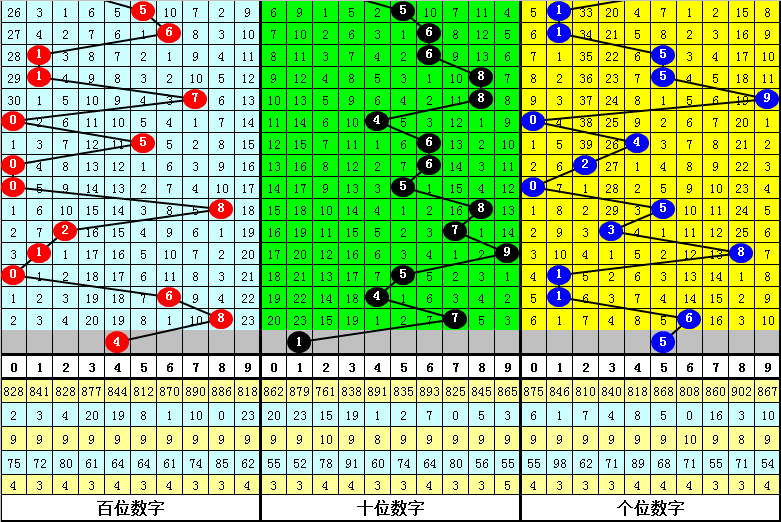 3、组选号码012路比为41:33:59,其中0路号码轮空12期,1路号码轮空13期,2路号码轮空11期,本期012路比参考0:2:1组合。