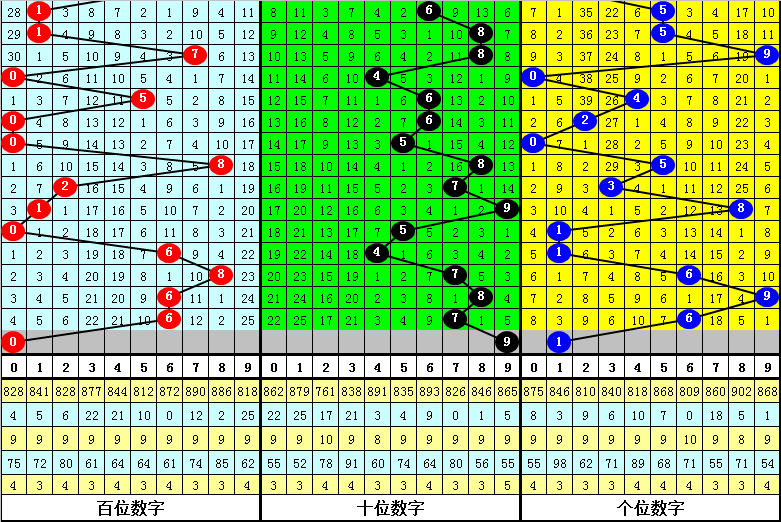 其中两码合0-9开出频次分别为:两码合5、6开出10次,7开出9次,9开出8次,3、4开出6次,0、1开出5次,8开出4次,2开出3次,其中两码合大小比为41:25,012路比为29:20:17,奇偶比为38:28;