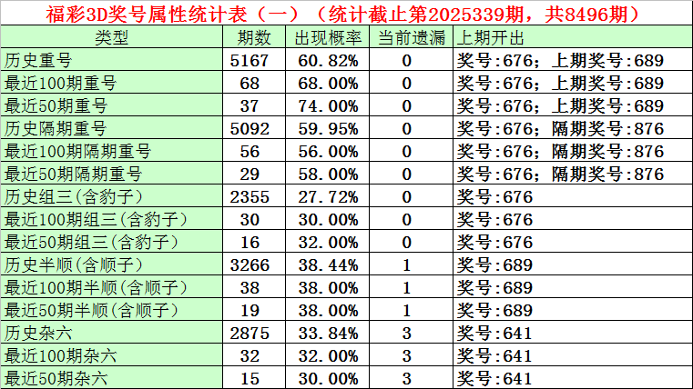 上期奖号:福利彩票3D第2025339期开出奖号676。