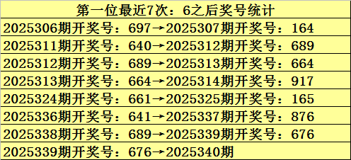 第一位冷码判断:上期奖号为6,遗漏值为0期,目前该位最冷号码为9,遗漏值为25期,本期注意冷码9解冻。