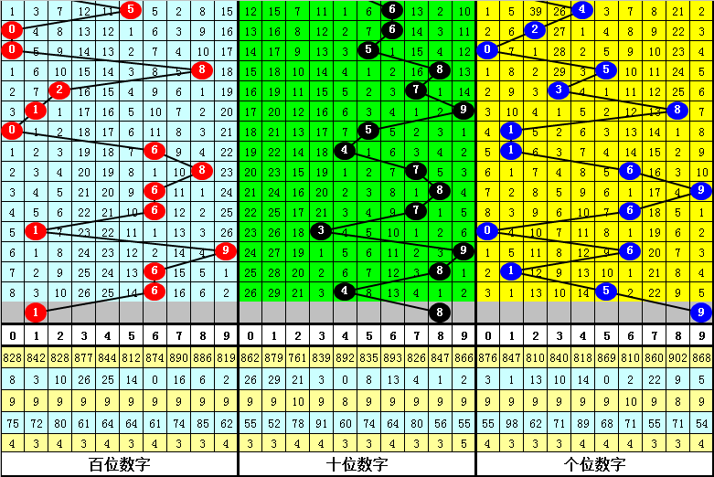第三位上期开出奖号5,走大4点,本期该位继续走大,参考号码9。