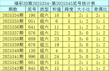 上期回顾:福利彩票3D第2025343期奖号为645。