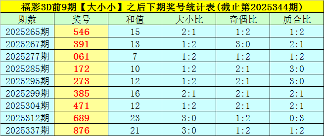 一、上期回顾:福彩3D第2025344期奖号为:622,奖号类型开出组三,大小比为1:2,奇偶比为0:3,和值为10,跨度为4,012路比为1:0:2。