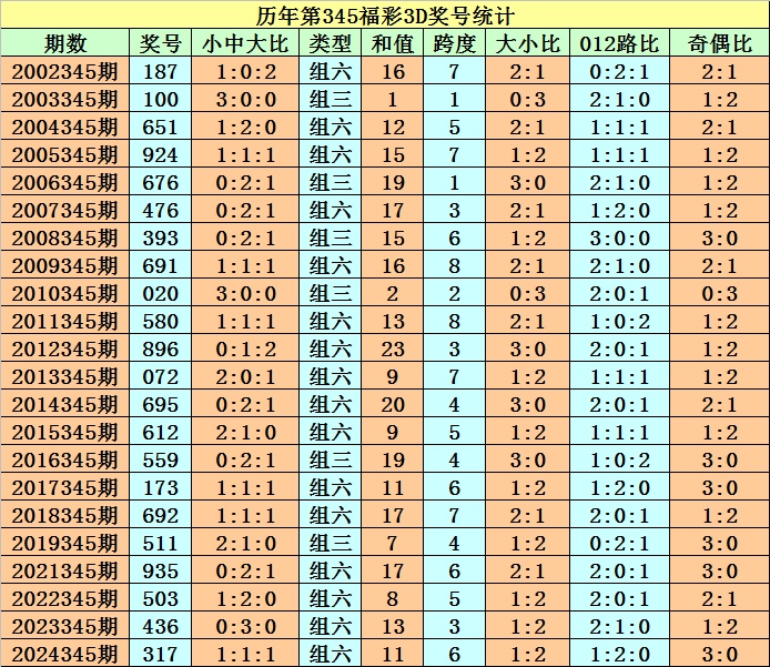 在历年同期开奖中,组三出现6次,组六开出16次,去年同期开出组六,今年同期看好组六再出。