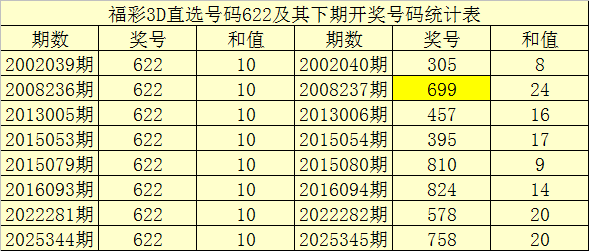 一、开奖回顾:第2025344期福彩3D奖号为622。奖号奇偶比为0:3,和值为:10,跨度为:4。