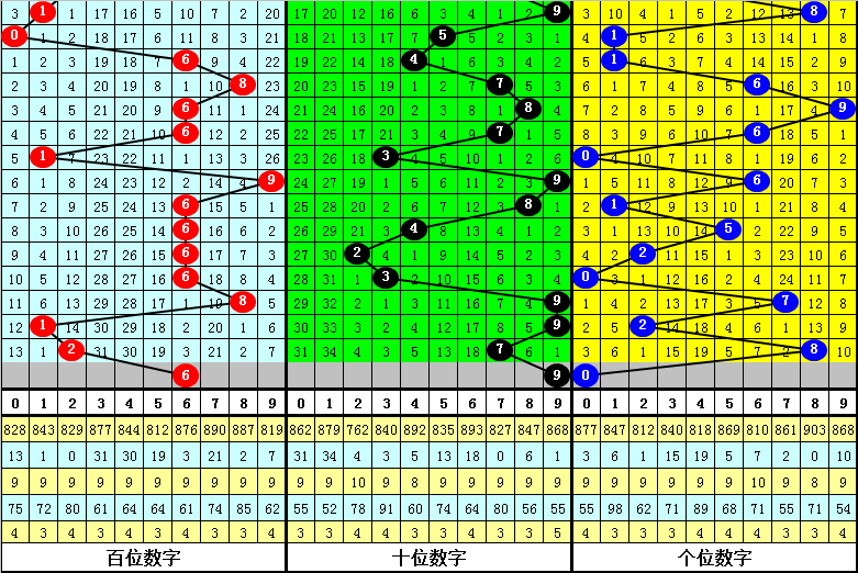 (2)在号码频次方面,开出个数最少的三个号码为:3、4、5,一般来说这三个号码不会同时出现;开出个数最多的四个号码分别为:6、8、0、1,本期看好这四个号码中包含1-2个开奖号码,胆码参考1。0。