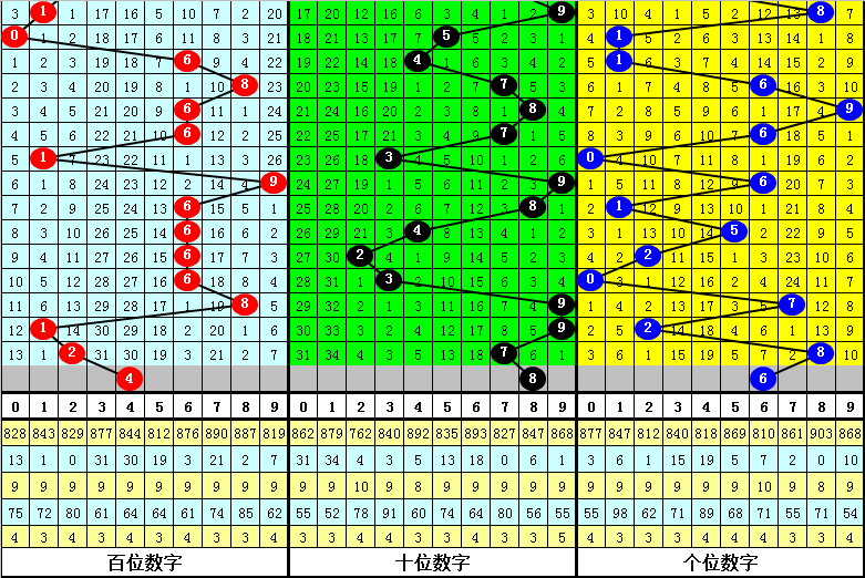 百个位合:前10期百个位两码合开出:2、1、5、7、1、8、6、5、3、0,其中百个位两码合012路比为3:3:4,奇偶比为6:4,本期参考百个位两码合开出偶数,两码合关注0、4、8。