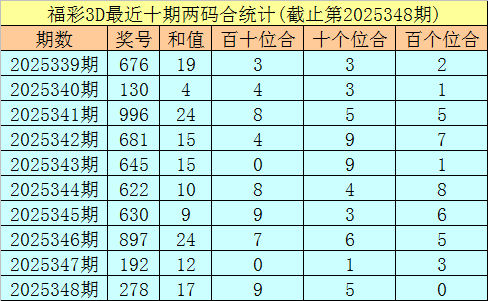 福彩3D第2025349期两位合分析:
