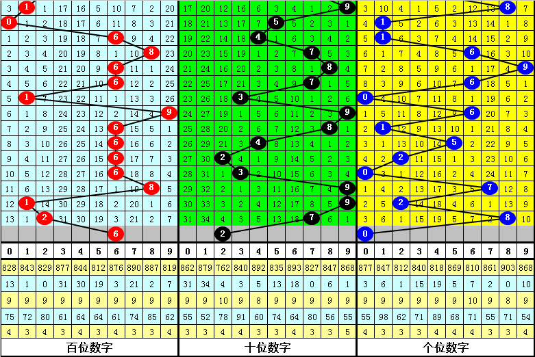 百位上期开出号码2,上升了1个点,本期看好该位继续上升,参考号码6。