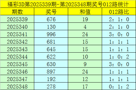 福彩3D第2025349期012路分析