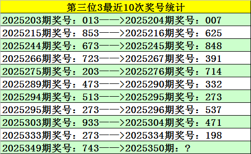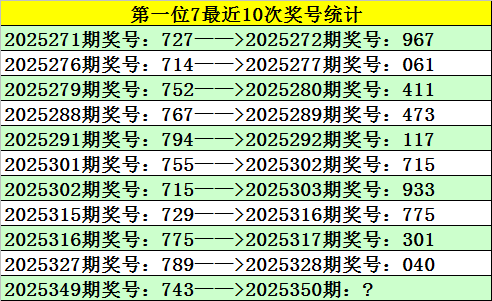 上期回顾:福彩3D第2025349期奖号743。和值14,跨度4,大小比1:2,奇偶比2:1。