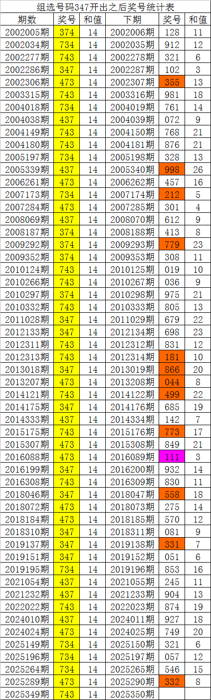 福彩3D第2025349期开出组选号码:347,该号码历史上组选出现了54次,其下期分别开出了号码:128、912、321、102、355、981、761、072、768、876、328、998、457、212、301、612、413、779、308、019、036、975、805、679、698、831、181、866、044、499、685、142、773、849、111、932、830、558、275、570、081、331、051、853、245、904、874、927、749、321、057、546、332,如图: