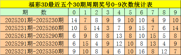 大小分析:在上一个30期周期内(第2025291期-第2025320期),奖号大小比为44:46,大小 号码出现次数基本相当;在但前30期周期内(第2025321期-第2025350期),3D开奖大小比为53:37,小 号出现次数相对较低。小 号最近1期出现较少,本期注意小 号回补,关注大小比1:2。