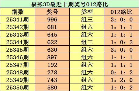 开奖回顾:第2025350期3D奖号为580。形态:组六,奇偶比1:2,大小比2:1,012路比为1:0:2。