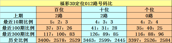 百位推荐:近10期出现5个0路号、2个1路号、3个2路号,0路号大热,1路号走势低迷。本期注意2路号,关注号码2、5、8。