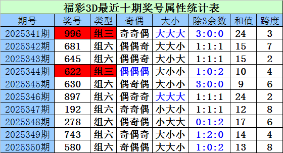 上期回顾:上期开奖奖号为580,类型:组六,奇偶偶,大大小,1:0:2,和值13,跨度8。