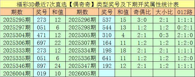 开奖回顾:福彩3D第2026004期开奖号码为019,奖号直选类型为:偶奇奇、小小大和010路。