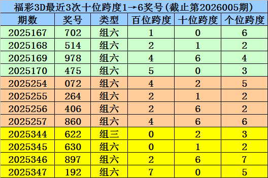 第2025344-第2025346期奖号:622、630、897,其下期奖号为:192,中位号码跨度为7;