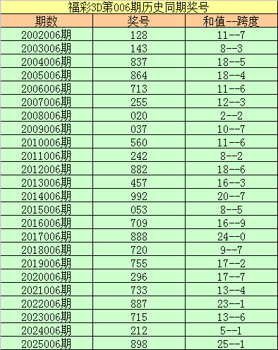 2025006期开奖号码:898