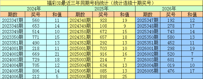 2024347期开奖号码:392;2025346期开奖号码:897
