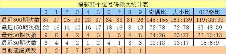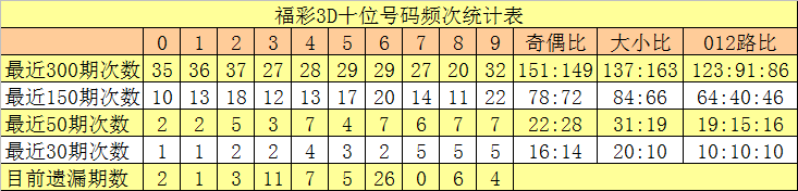 个位分析:近50期该位表现活跃的号码有:0出现9期,1出现8期,9出现6期;表现较冷的号码有:3开出2期,7开出3期,2、4、8开出4期。该位号码奇偶比为24:26,大小比为23:27。本期该位杀两码1、9,防号码0、2、7出现,精选一码0。