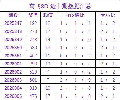 开奖回顾:福彩3D开奖号为476,和值为17,其中奖号012路比为1:2:0,大小比2:1。