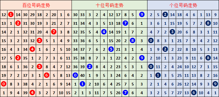 个位号码上期开出偶数号码6,近十期奇偶比3:7,整体来看偶数球出号次数较多,本期关注奇数号码热出,重点关注号码5。