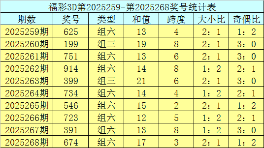 开奖回顾:福彩3D第2025268期奖号:674。
