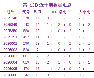 开奖回顾:福彩3D开奖号为244,和值为10,其中奖号012路比为0:2:1,大小比0:3。