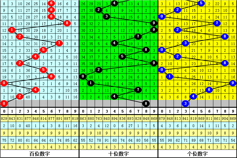 从以上统计可以看出,在组选分布图中,号码0开出7次,1开出8次,2开出5次,3开出5次,4开出8次,5开出5次,6开出5次,7开出7次,8开出12次,9开出7次,号码奇偶比为32:37,偶号走势相对活跃,本期预计偶数继续热出,奇偶比为1:2;号码大小比为:36:33,小 号走势相对较冷,本期看好小 号回补,大小比参考1:2。