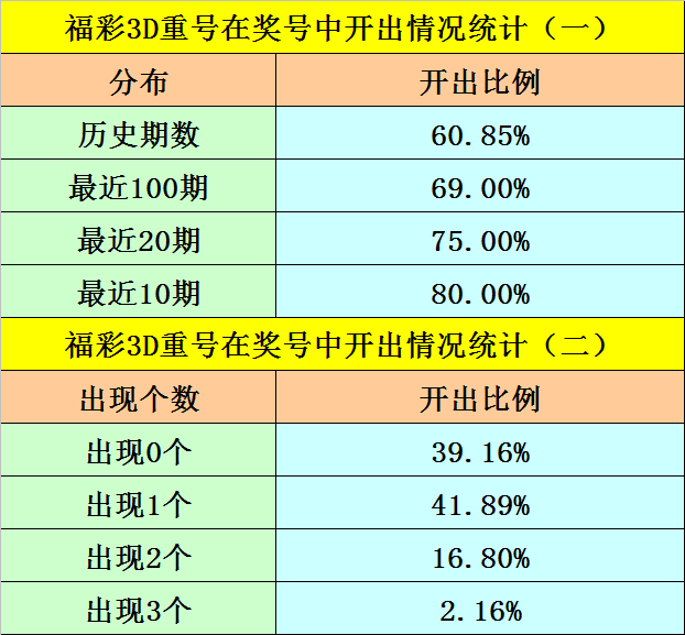 最近100期开奖中,含有重号的奖号有69期,最近20期含有重号的奖号有15期,最近10期含有重号的奖号有8期。本期注意重号落号。。本期排除重号。