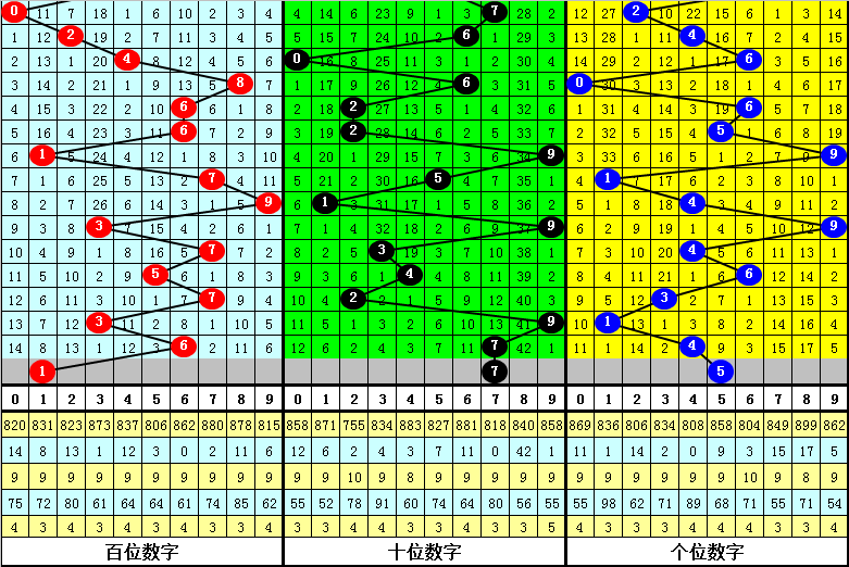 第一位上期奖号为6,走大3点,本期预计该位走小,关注号码1。