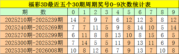 类型分析:福彩3D在上一个30期周期内(第2025300期-第2025329期),豹子号码没有出现,组三号码开出10次,所占比例为33%,组六号码出现20期,出现比例为67%,其中组六号码开出比例明显较高。